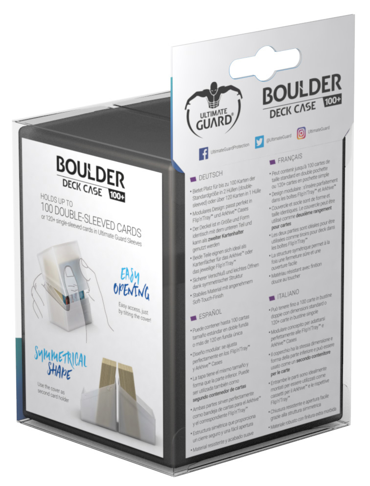 De Ultimate Guard Boulder 100+ is een van de meest populaire deckboxen onder TCG‑spelers dankzij zijn stevige constructie, strakke vormgeving en betrouwbare bescherming. De box is ontworpen om kaarten veilig, compact en overzichtelijk op te bergen — ideaal voor Magic: The Gathering, Lorcana, Pokémon en andere kaartspellen.